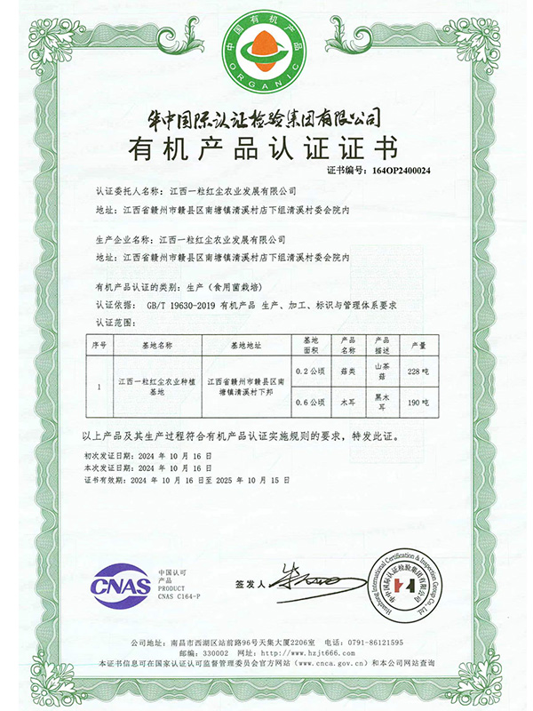 有機(jī)產(chǎn)品認(rèn)證證書